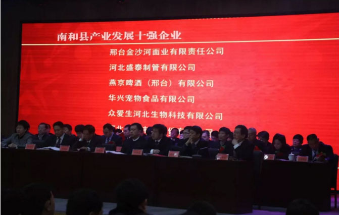 會(huì)議期間,頒發(fā)了多個(gè)獎(jiǎng)項(xiàng),各獲獎(jiǎng)企業(yè)代表紛紛上臺(tái)領(lǐng)獎(jiǎng),縣委副書(shū)記、政府縣長(zhǎng)韓明智同志為各企業(yè)頒獎(jiǎng)。大會(huì)取得圓滿成功,與會(huì)企業(yè)深受鼓舞。華興寵物食品有限公司榮獲”南和縣產(chǎn)業(yè)發(fā)展十強(qiáng)企業(yè)“稱號(hào)。